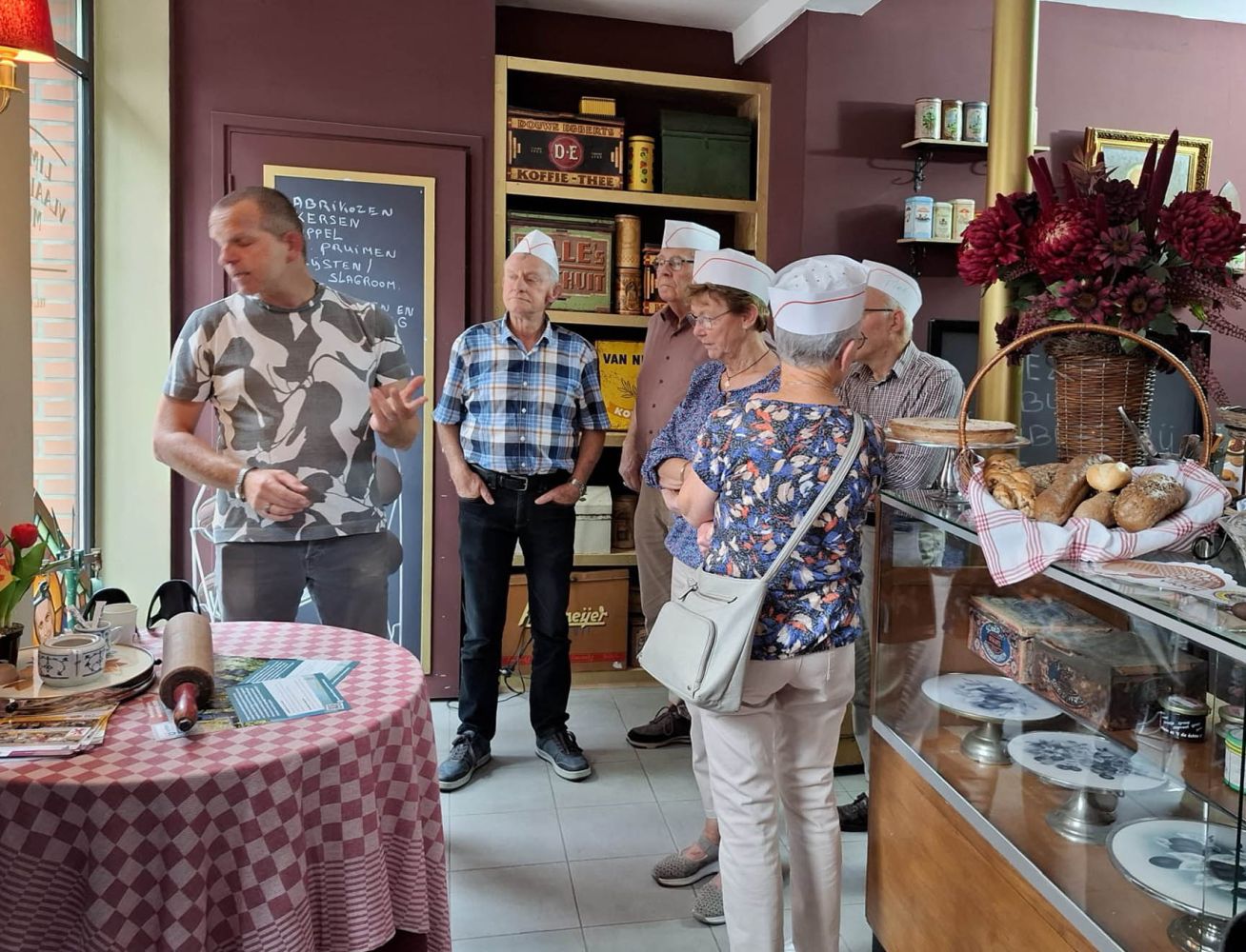 Drie enthousiaste dames, Marianne Baeten, Marian Hornman en Anny Janssen hebben plannen gemaakt voor het uitstapje van 2025. Datum werd geprikt en daar stonden we dan met z’n allen op vrijdag 12 september om 13.00 uur op de stoep bij het ‘Limburgse vlaaibakkerijmuseum’ van Ard Gerards.